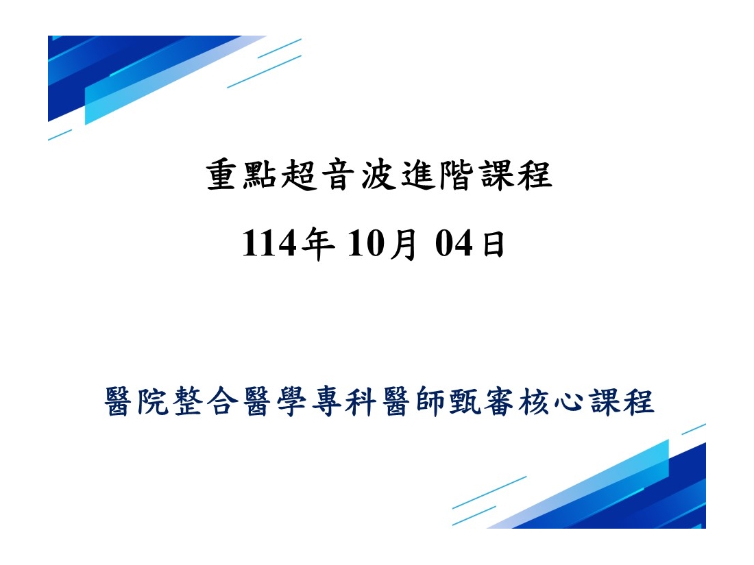 • 114.10.04 臺灣醫院整合醫學醫學會-重點超音波進階課程