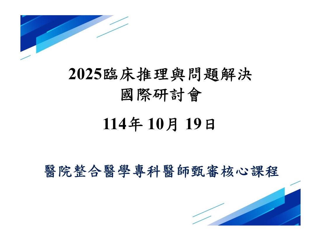 • 114.10.19 臺灣醫院整合醫學醫學會-2025臨床推理與問題解決國際研討會