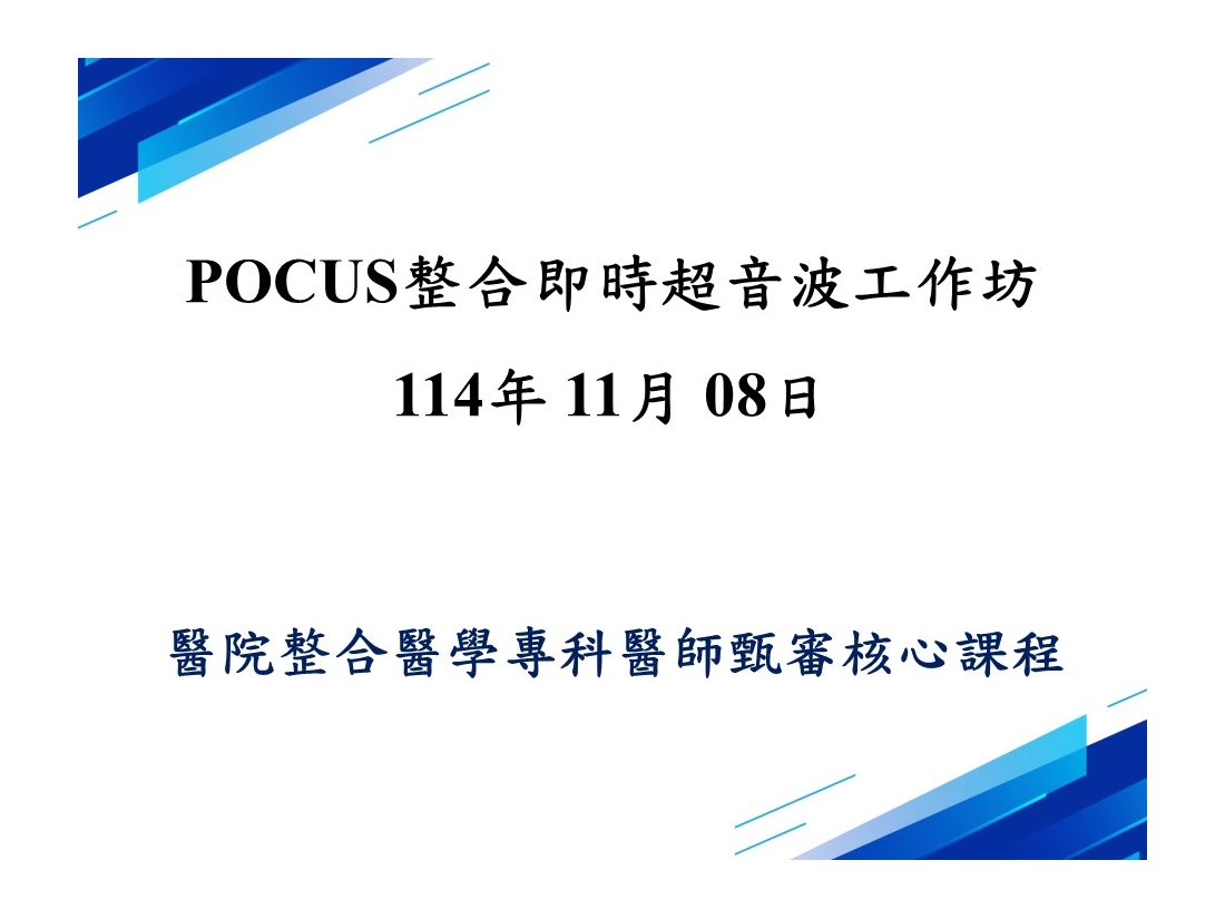 • 114.11.08 臺灣醫院整合醫學醫學會-POCUS整合即時超音波工作坊