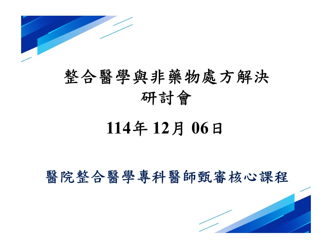 • 114.12.06 臺灣醫院整合醫學醫學會-整合醫學與非藥物處方解決研討會