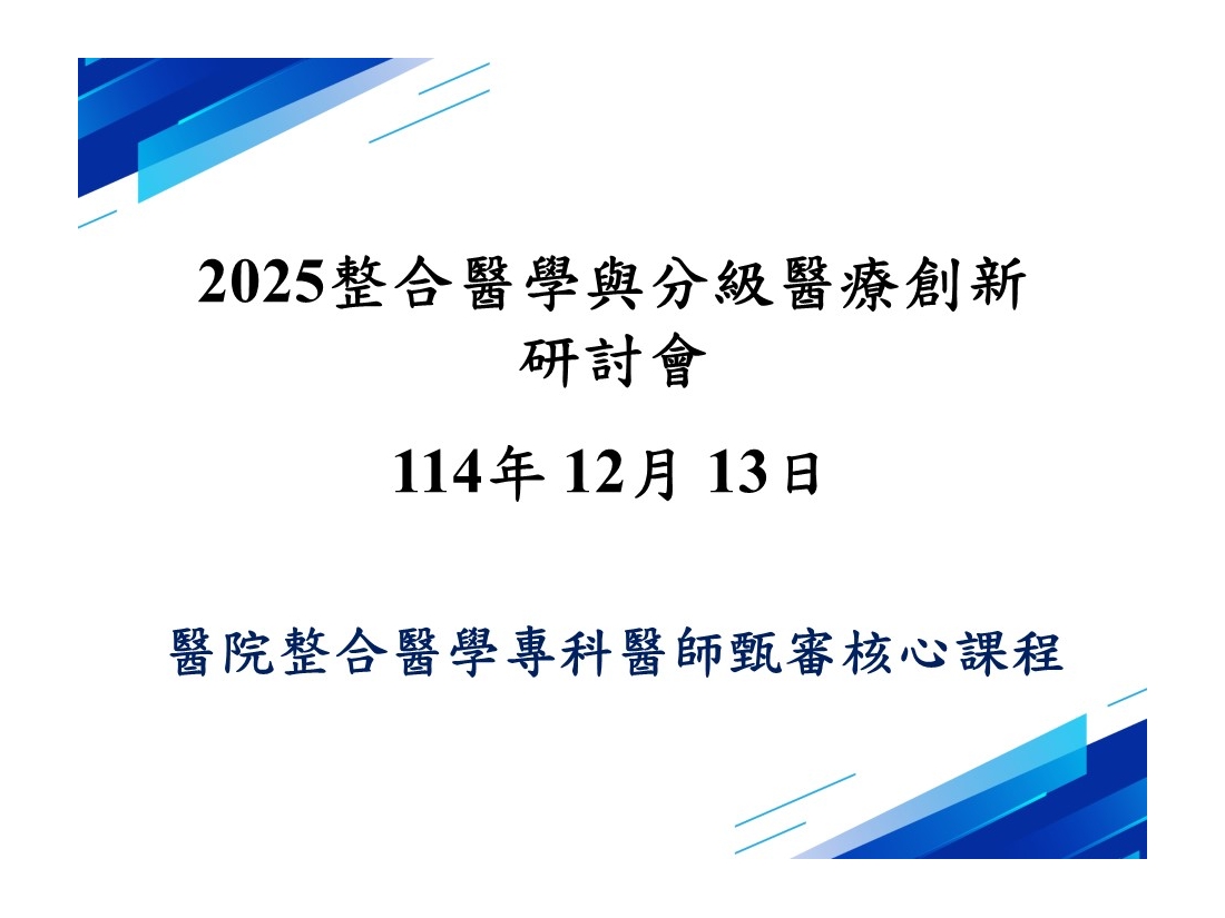 • 114.12.13 臺灣醫院整合醫學醫學會-2025整合醫學與分級醫療創新研討會