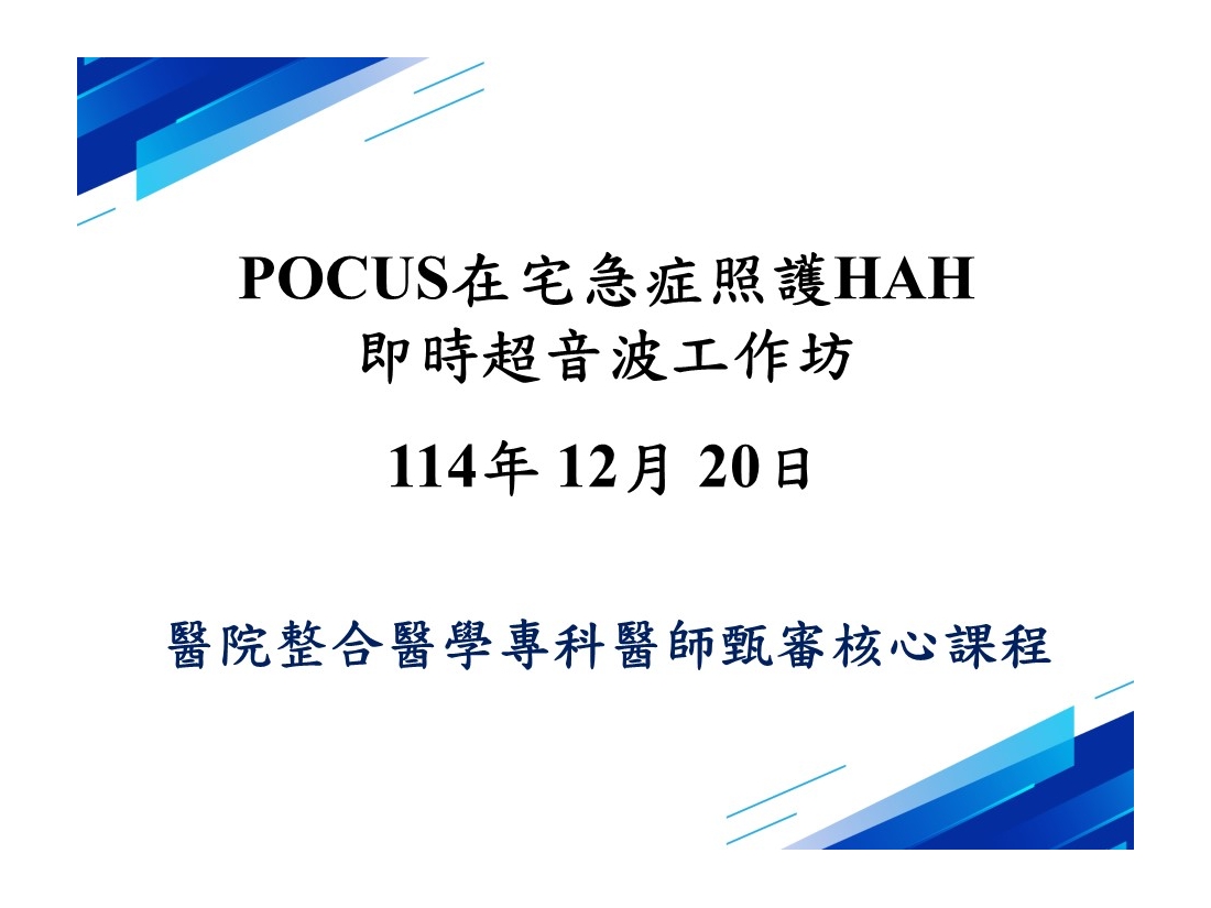 • 114.12.20 臺灣醫院整合醫學醫學會-POCUS在宅急症照護HAH即時超音波工作坊